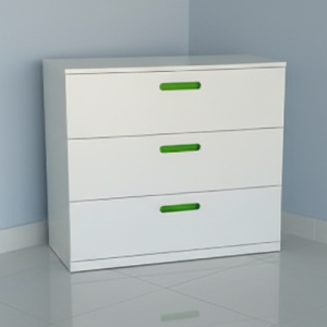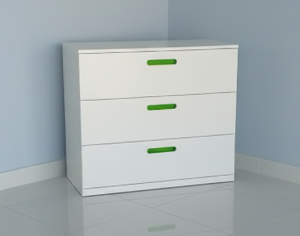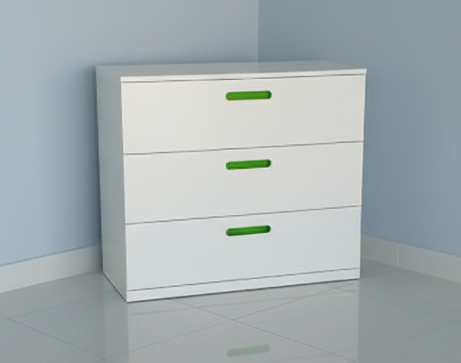 Spacious drawer cabinet, smooth sliding rails, minimalist handles