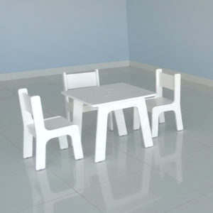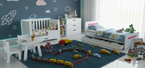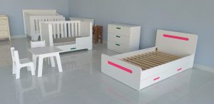 Bed; Crib; Chest of drawers; Table and chair: customized according to age