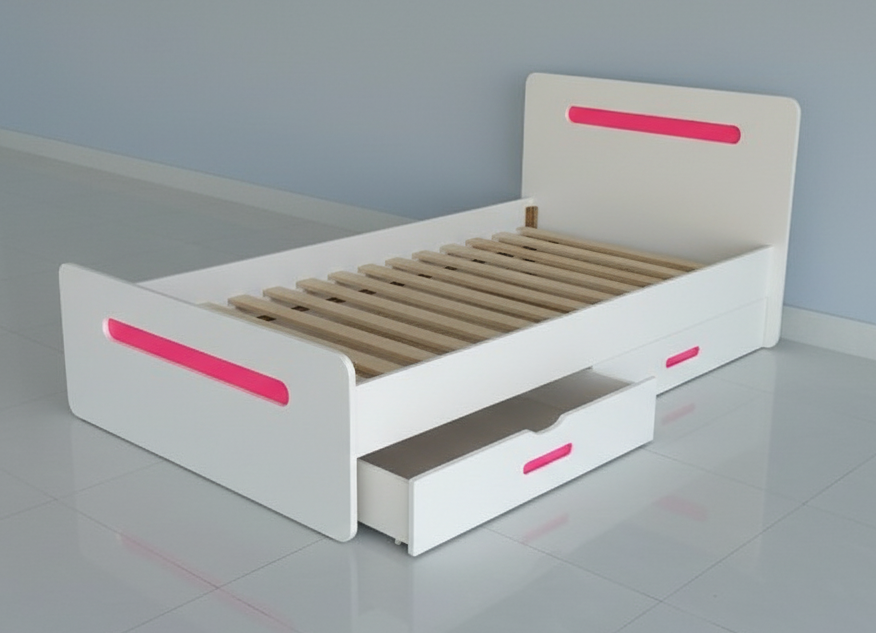 Children’s bed with sturdy bed slats, safe rounded edges