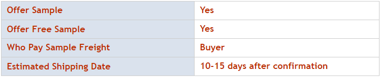 2/ Lead time : 10 working days for sample ; 45 days after recieved the deposit for 40 ft container.